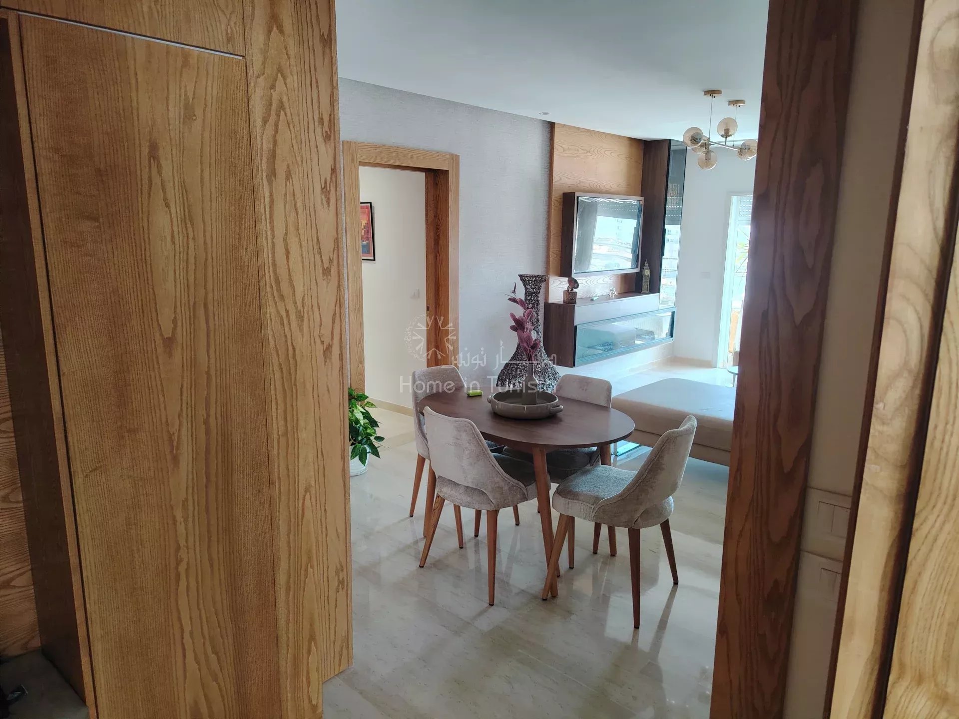L’appartement est vendu non meublé, mais peut être acquis avec son mobilier haut de gamme pour un supplément de 20 000 TND.
