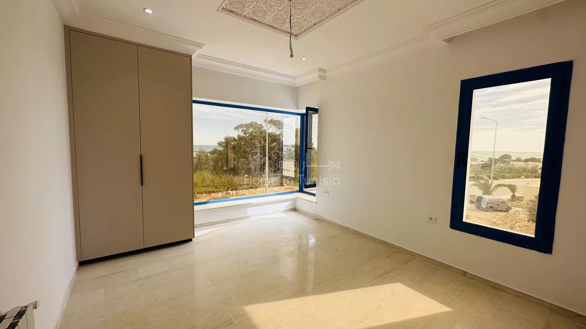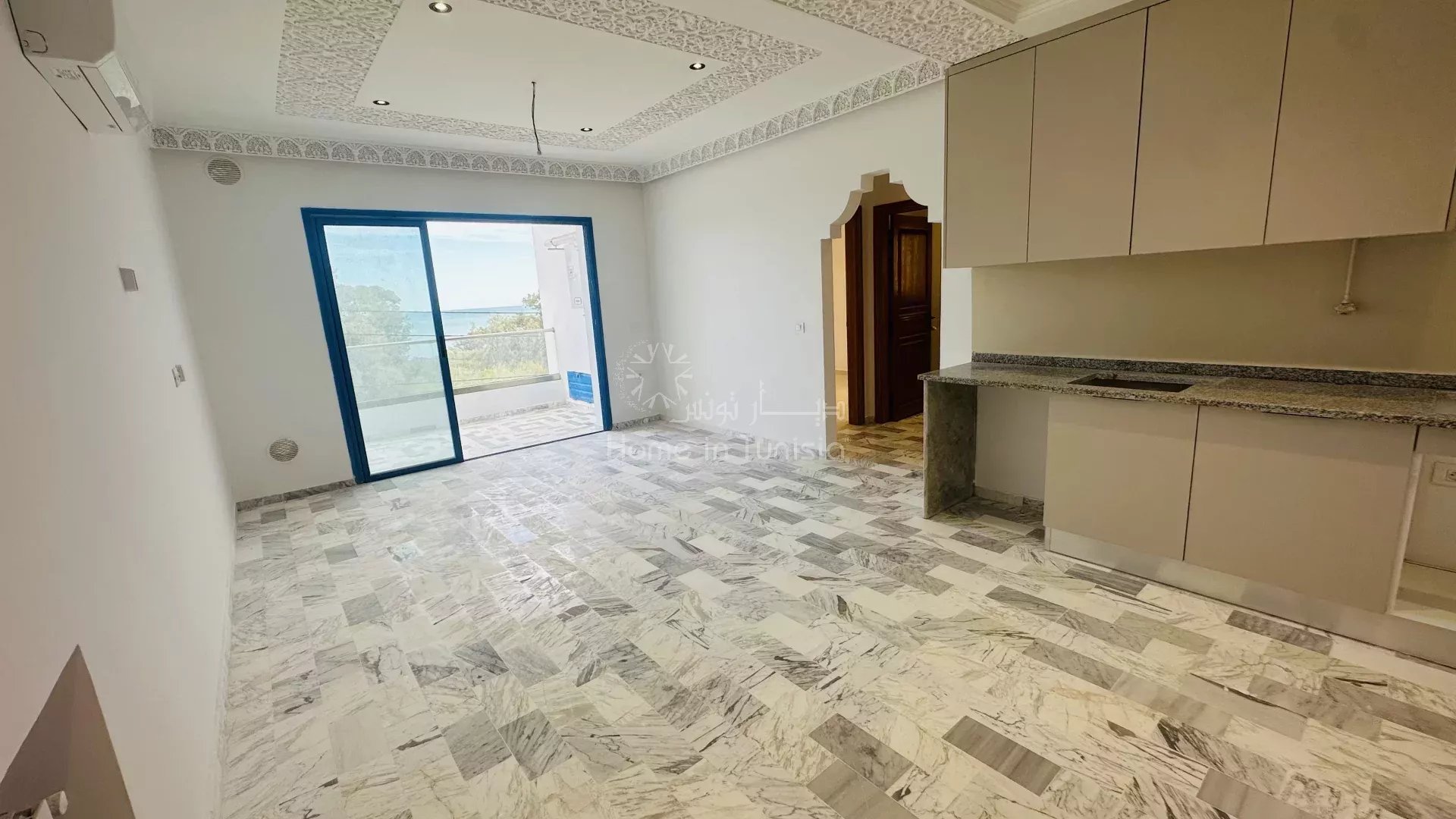 Appartement S+2 situé au 1er étage, avec vue mer, à 1 minute de la plage, neuf et jamais habité, au sein d’une résidence calme et bien entretenue avec ascenseur.